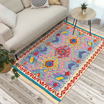 Handwoven with tradition and artistry, this 3×5 Afghani Kilim features bold geometric patterns and rich, earthy tones. Made from 100% wool, it’s lightweight, durable, and perfect for adding a touch of cultural charm to any space.